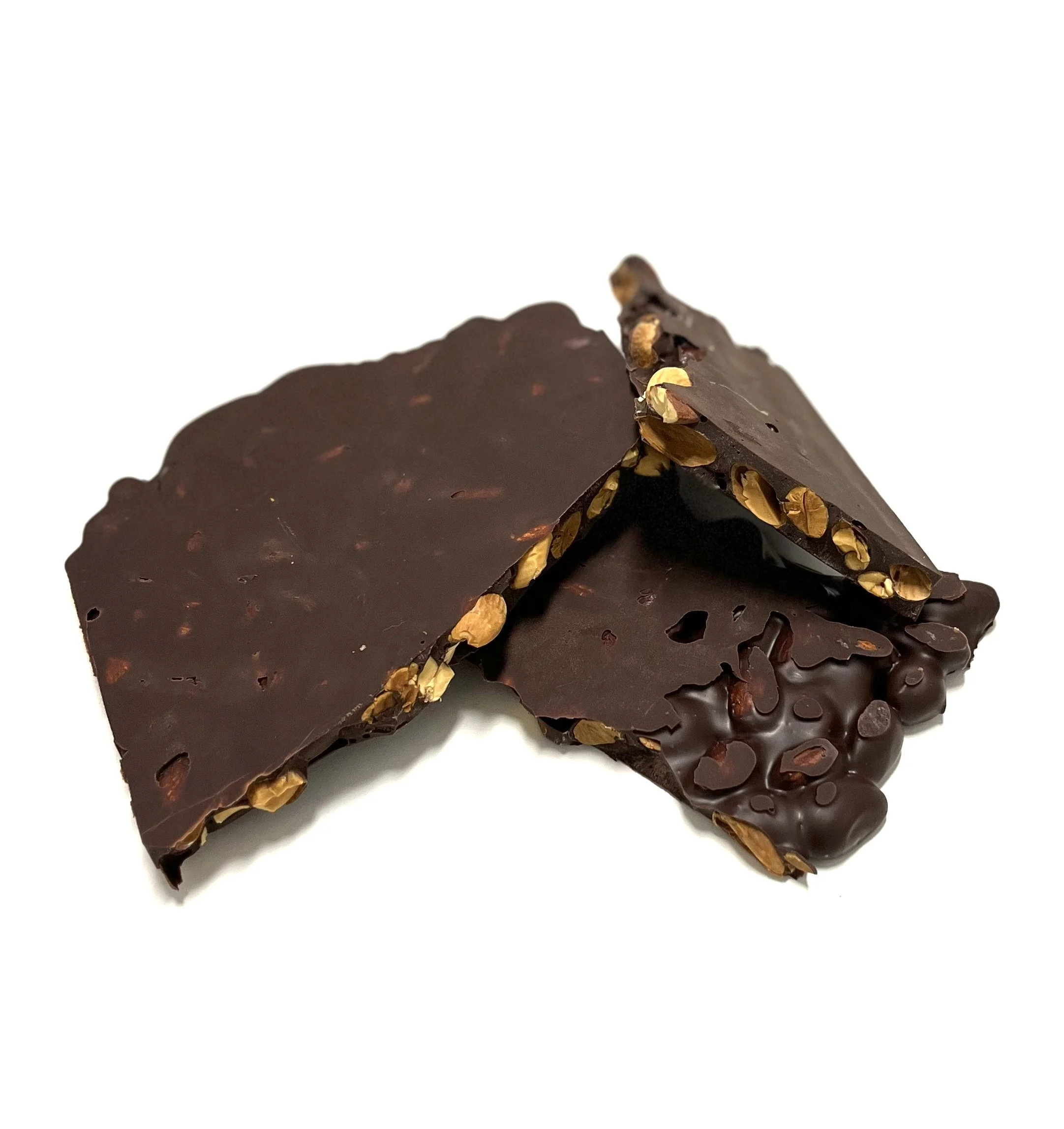 Composit : chocolat noir 66% ou chocolat lactée . Sucre, beurre de cacao, beurre, lait entier en poudre, fèves de cacao, émulsifiant: lécithine de tournesol.extrait naturel de vanille, amandes