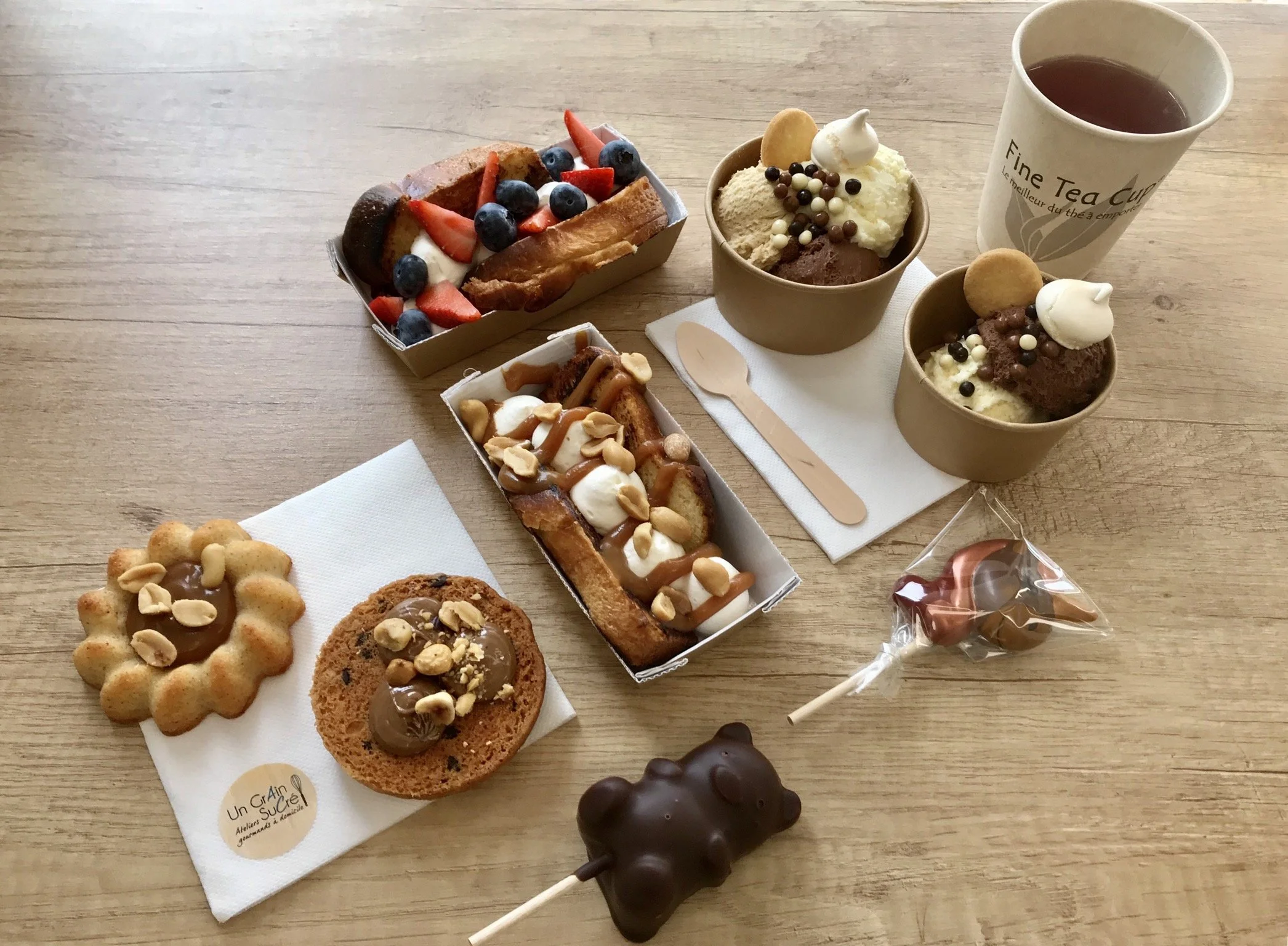 Oursons en guimauves, sucettes originales, brioches perdues, boissons chaudes et froides, gourmandise du moment selon la saison (noël, pâques etc.)
